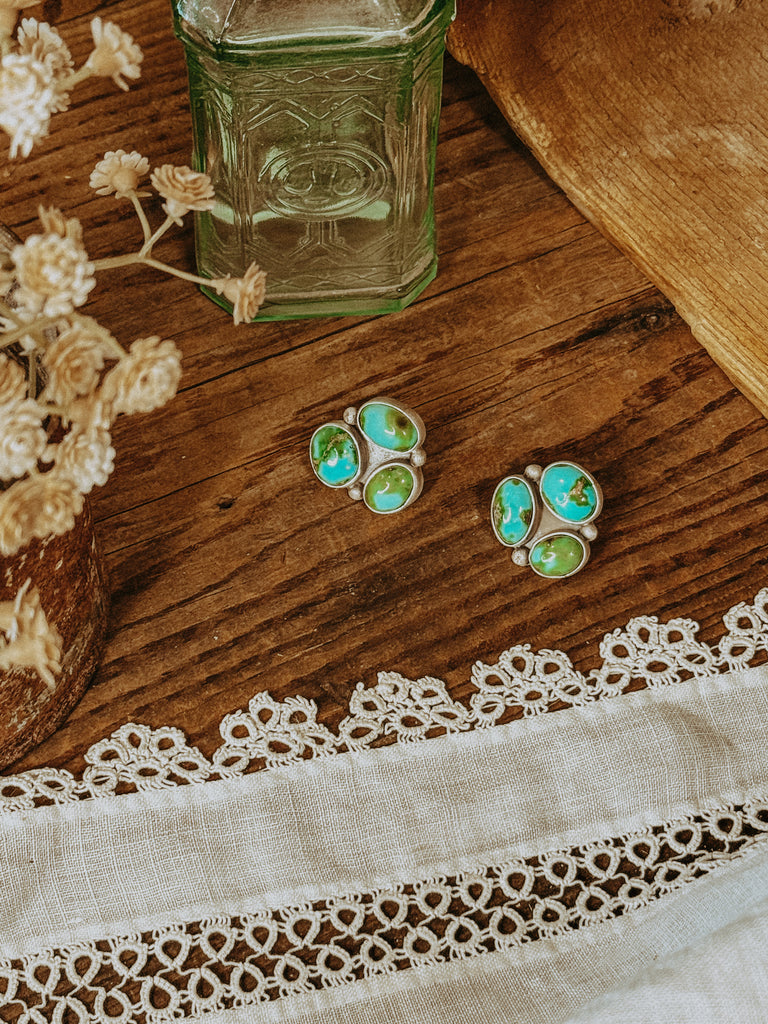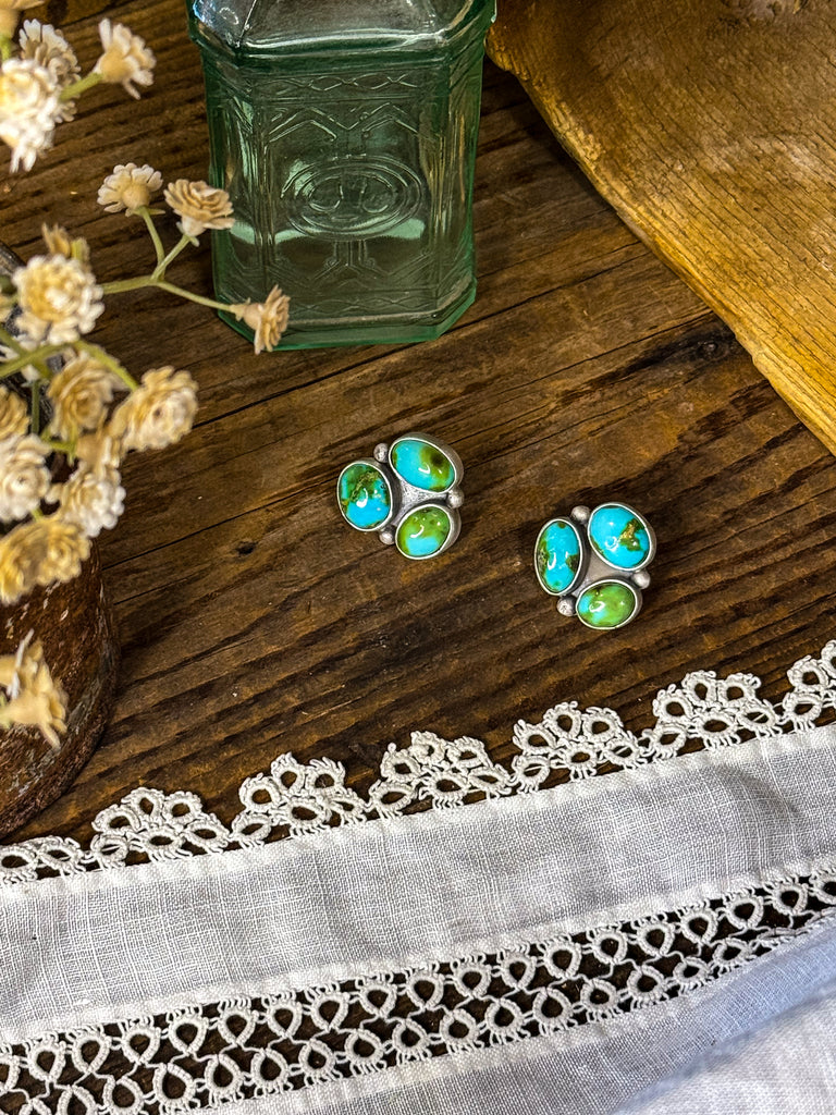 Sterling silver and Sonoran cluster studs. Absolutely beautiful stones in these! Signed and stamped by the artist.