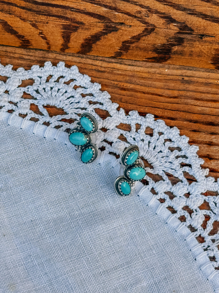 Sterling silver and genuine turquoise, handmade in Georgia. Comes with comfort backs. Stones will vary by nature.