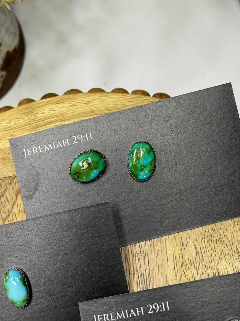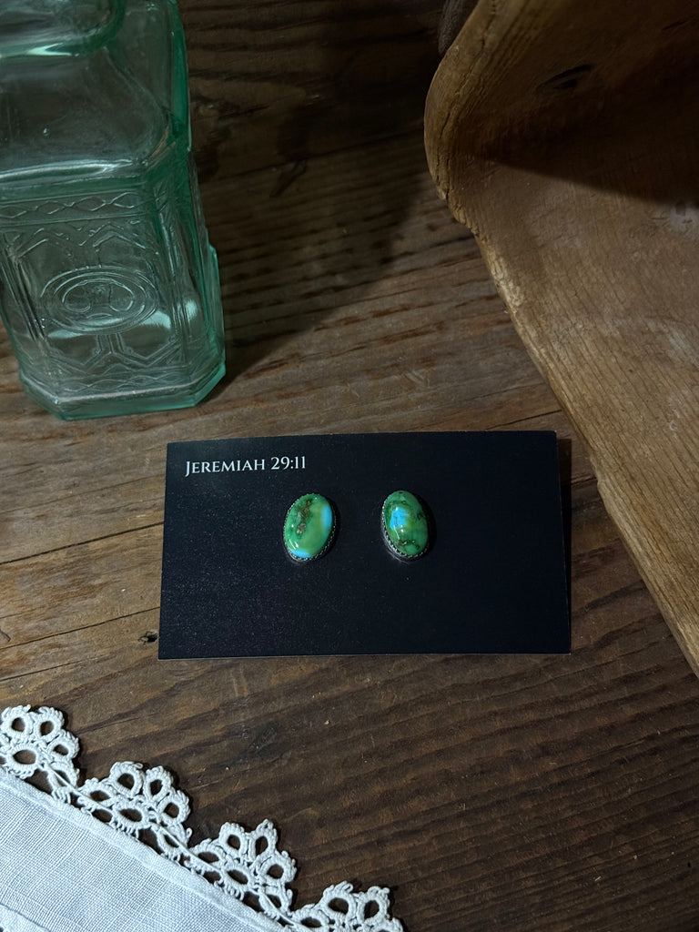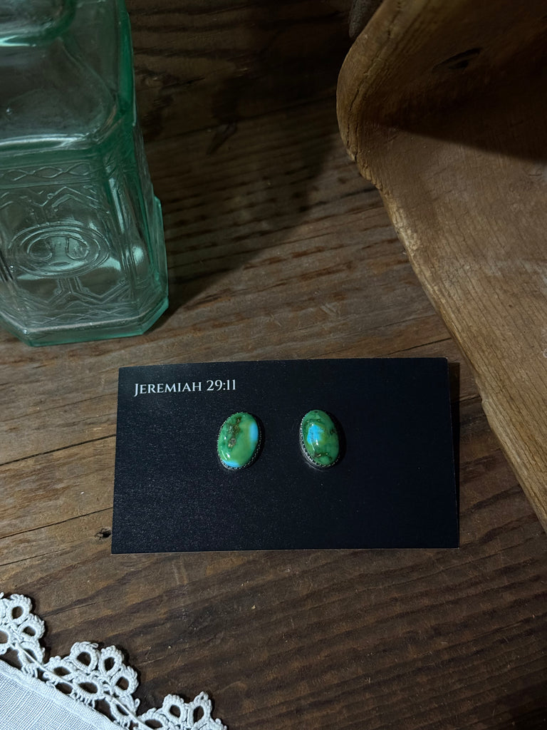 Authentic turquoise and Sterling silver studs made by Dorothy Yazzie.