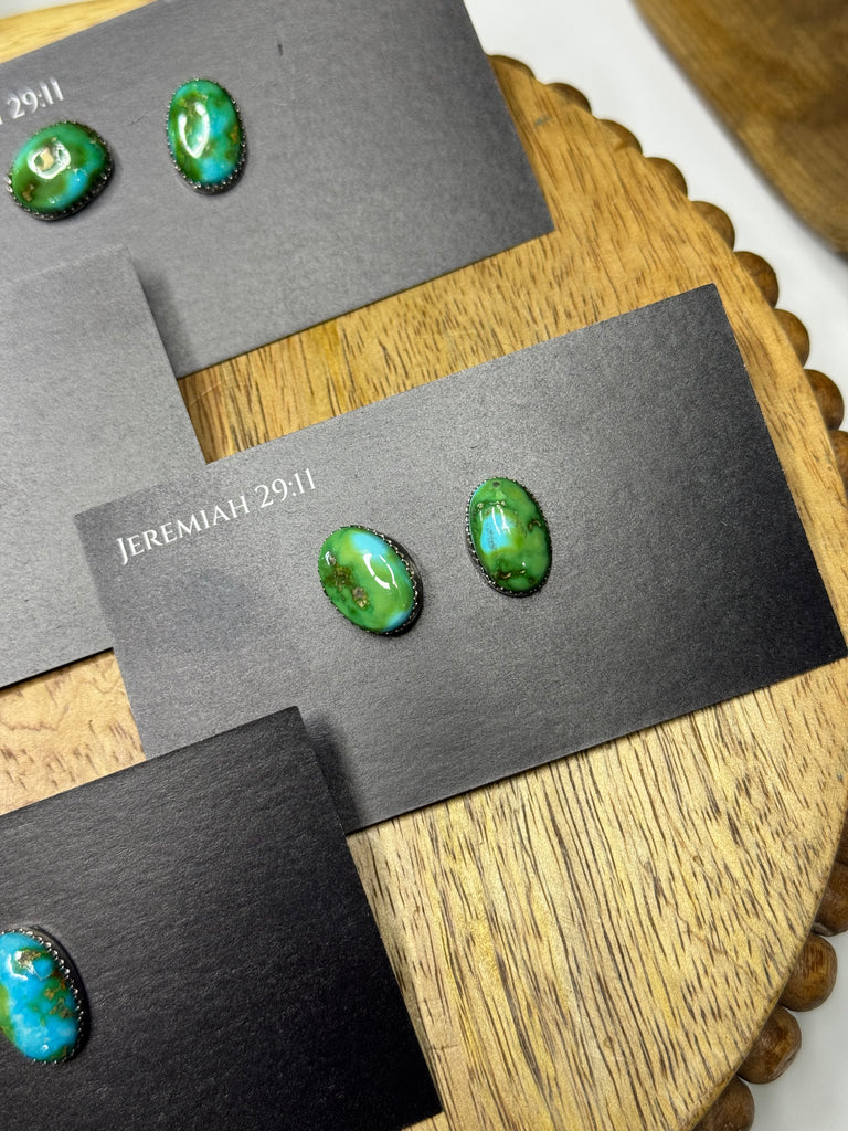 Authentic turquoise and Sterling silver studs made by Dorothy Yazzie.