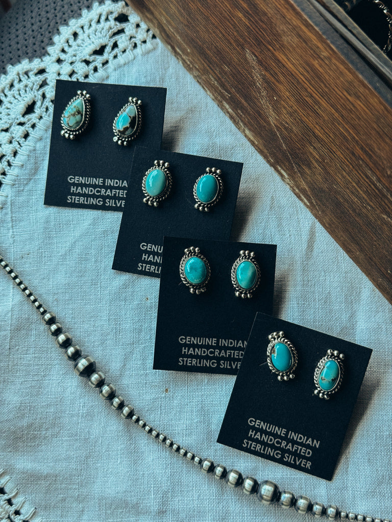Handmade by Rosemary Saunders. The perfect everyday turquoise studs. Stamped Sterling.
