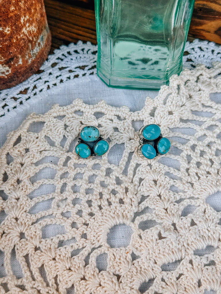 Sterling silver and genuine turquoise. These cuties are signed and stamped by the artist. 3/4”