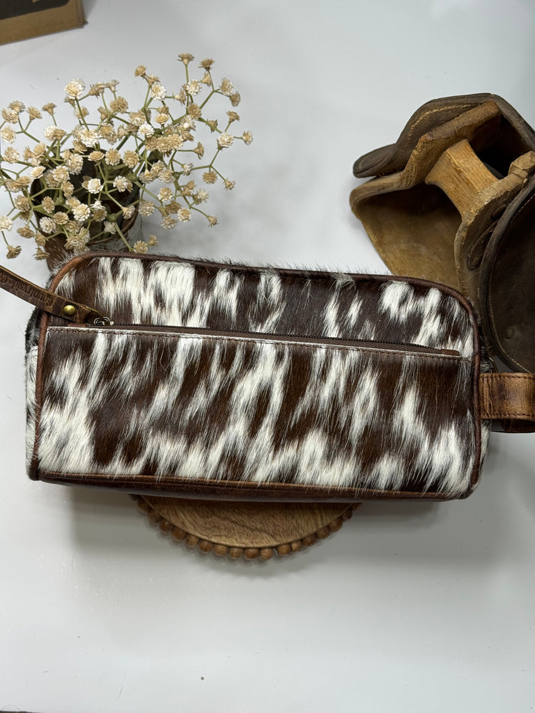 Made from cowhide and genuine leather, has zippered pockets on the front and back and is perfect for men or women!