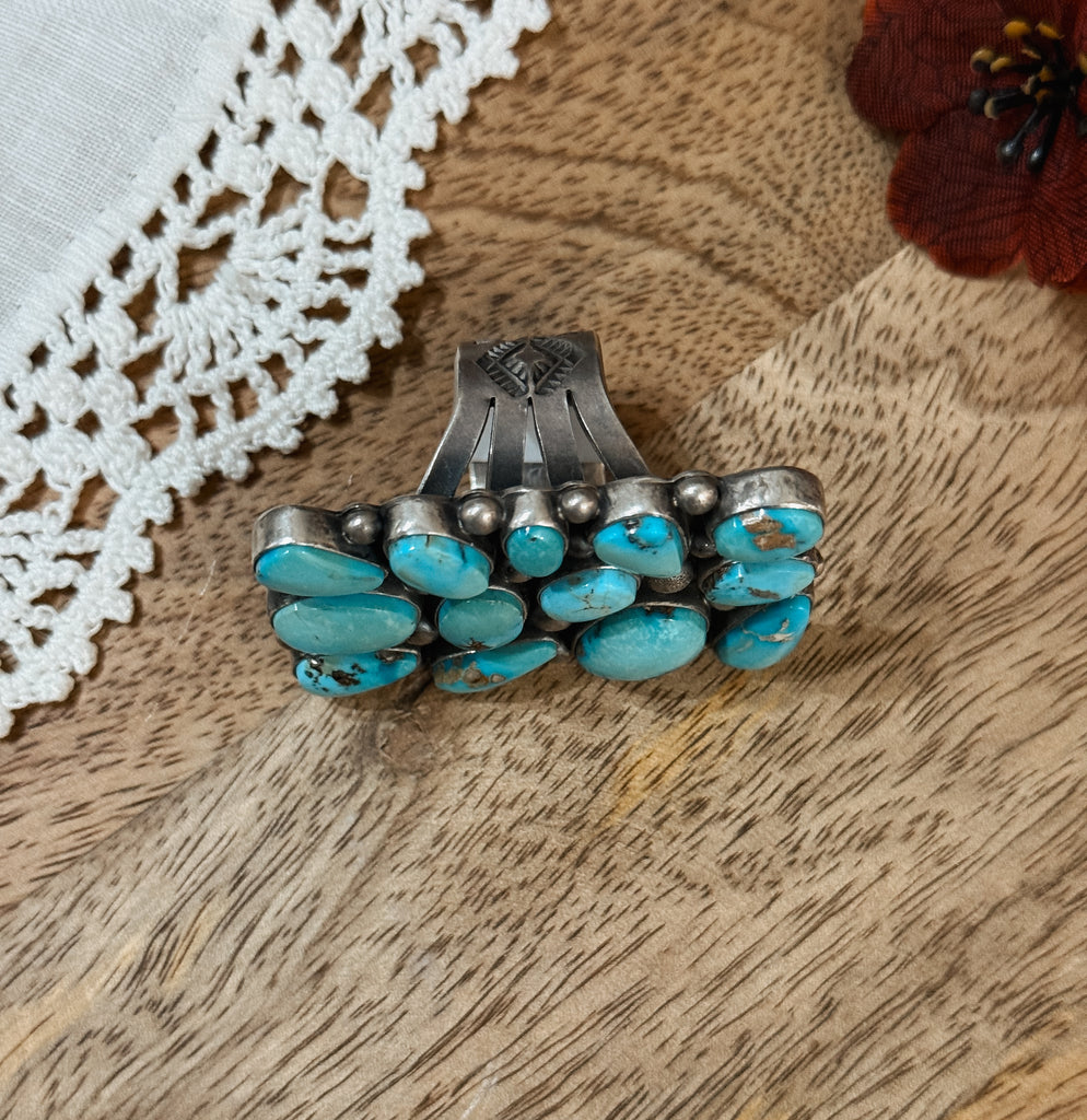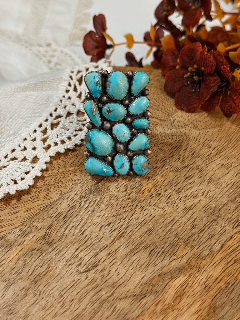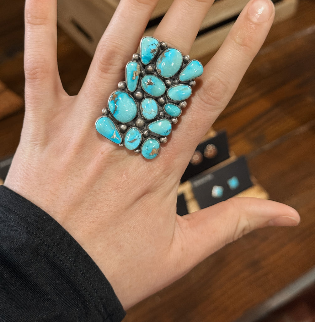 This absolutely stunning ring is sterling silver and authentic turquoise! It is stamped by the artist, Elgin Tom. Size 10.5