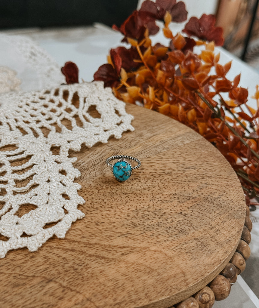 Size 6, sterling silver ring with authentic turquoise.