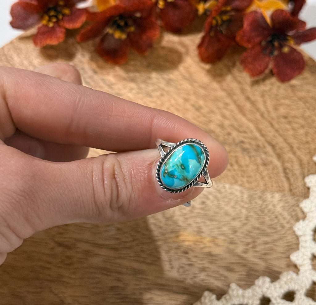 This Sonoran gold and sterling silver size 9 ring is made by Jerryson Henio. Stamped sterling.