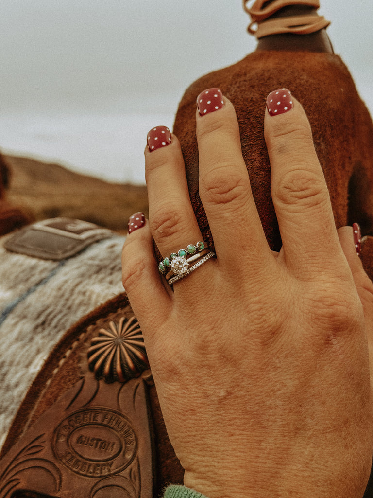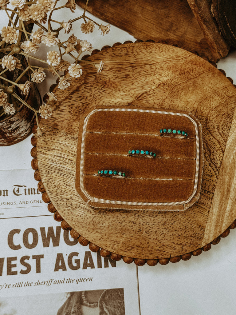 These cuties are handmade with Sonoran mountain turquoise and sterling silver. Great for stacking or wearing alone!